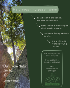 Was stärkt Menschen wirklich und hilft ihnen, ihren Weg klar, stark & souverän zu gehen? Diese Frage treibt mich in meiner Arbeit als Coach an. Mein Arbeiten ist systemisch, wertschätzend und legt Wert auf die eigene Intuition. Als Tochter eines Försters ist die Natur für mich schon immer ein unverzichtbarer Bestandteil meines Lebens. Warum also nicht die Natur auch als Coaching-Partner bewusst einsetzen? Ich glaube nicht an Entweder-Oder. Ich glaube an Verbindung und daran, in der Natur Perspektiven zu finden.