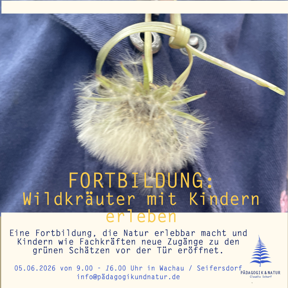 Wildkräuter wachsen direkt vor unserer Tür – auf Wiesen, am Wegesrand oder im Garten. Sie laden Kinder zum Entdecken, Staunen und sinnlichen Erleben ein. Diese Fortbildung vermittelt praxisnah, wie heimische Wildkräuter sicher, kreativ und kindgerecht in den pädagogischen Alltag integriert werden können.